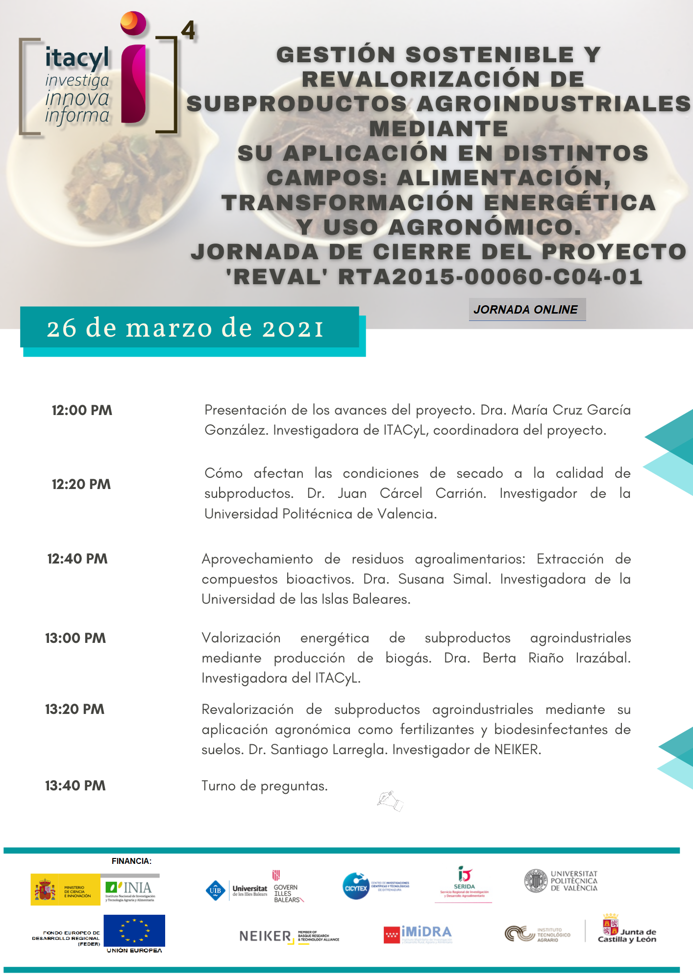 Inscripciones: https://www.itacyl.es/jornadas/20210326_subproductos_agroind
